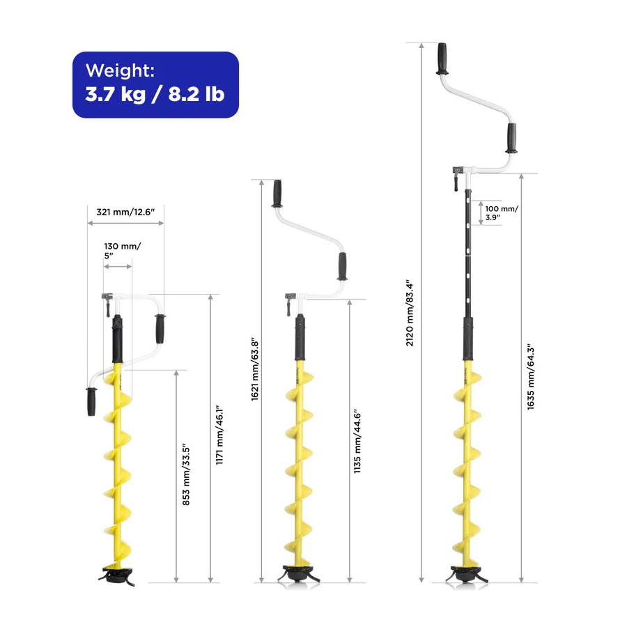 Regulacja wysokości świdra - zależnie od wzrostu wędkarza i grubości pokrywy lodowej.